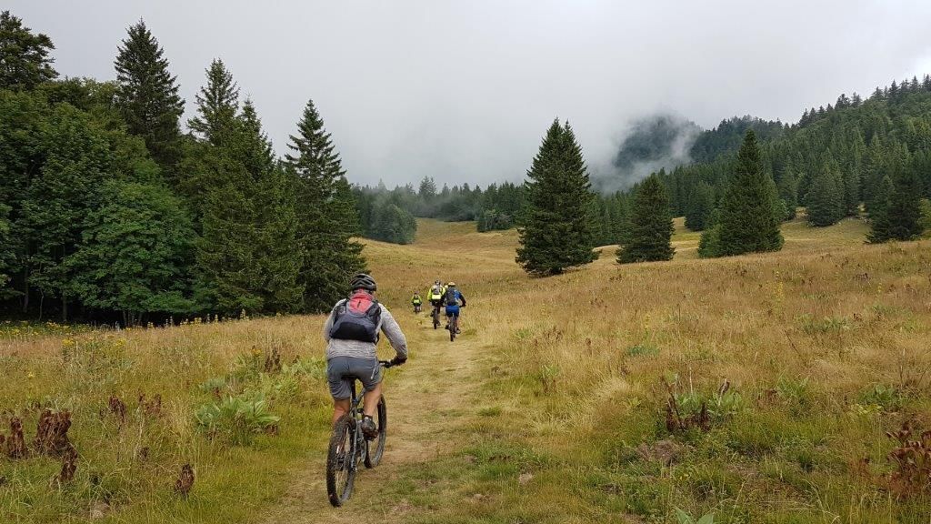 Bonjour les vététistes, Chartreuse, vous avez dit Chartreuse. Quant on pense à elle: belle couleur verte à 40°. Mais nous, nous avons eu du vert (la foret) du marron (boue bien gluante) du blanc (pierres bien glissantes). Heureusement, les sept forçats étaient là pour affronter les multiples pièges que nous tendait ce beau massif. Grand bravo à Alain qui, pour sa rentrée, s'est farcie 10 km de montée sans assistance. Ensuite, vu les difficulté du sentier, il devait sourire dans sa barbe. Grand sourire quant nous avons débouché dans la prairie d'Arpizon. Vue magnifique sur les vallons et casse-croûte bien venu en compagnie de randonneurs de Grenoble. Après avoir perdu quelques points, Pierre à tout rattrapé dans cette belle descente vers la Ruchère.